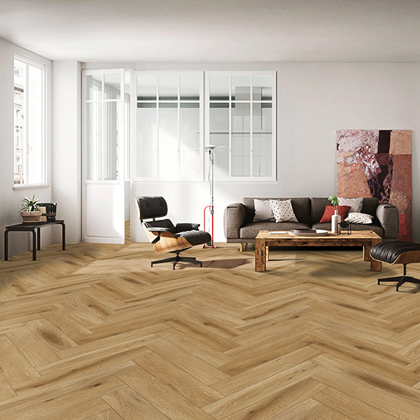 Dub Newcastle stavia na kontraste – výrazná dubová kresba, pevná geometria rybej kosti a elegantný rytmus, ktorý priťahuje pohľad hneď pri vstupe do priestoru. Tento dekor funguje ako dizajnový základ interiéru, nie ako pozadie – vytvára štruktúru, poriadok a vizuálnu hĺbku, ktorú oceníš v moderných aj reprezentatívnych priestoroch.