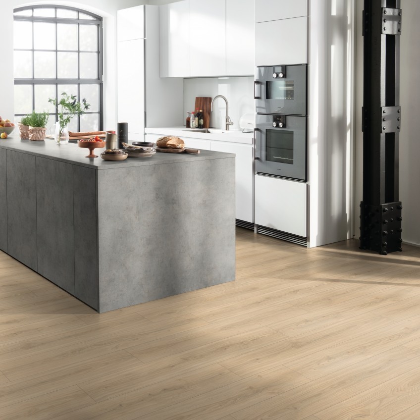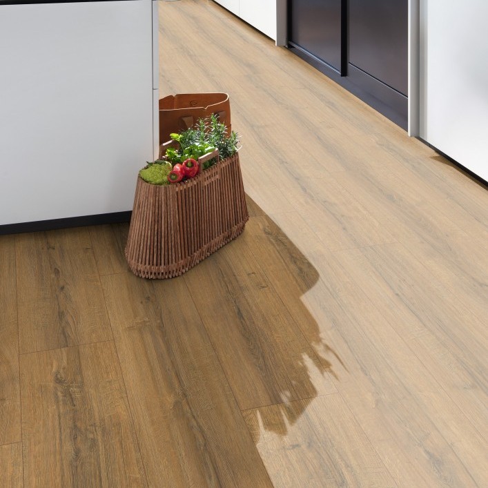 Laminátové podlahy Aqua Plus vynikajú vysokou funkčnosťou, atraktívnym vzhľadom a sú vhodné pre zdravý domov. Spoľahlivo odolávajú vode až 72 hodín, vďaka čomu sú ideálnou voľbou aj do priestorov so zvýšenou vlhkosťou. Špeciálne zloženie nosnej dosky chráni podlahu proti napučaniu a vodotesný inštalačný systém Aqua Clic it! zabezpečuje maximálnu ochranu pred vodou. Vďaka robustnému povrchu a dvojitej ochrane proti vode je Aqua Plus skvelou alternatívou k dlažbe a výborne sa hodí do chodby a kuchyne.